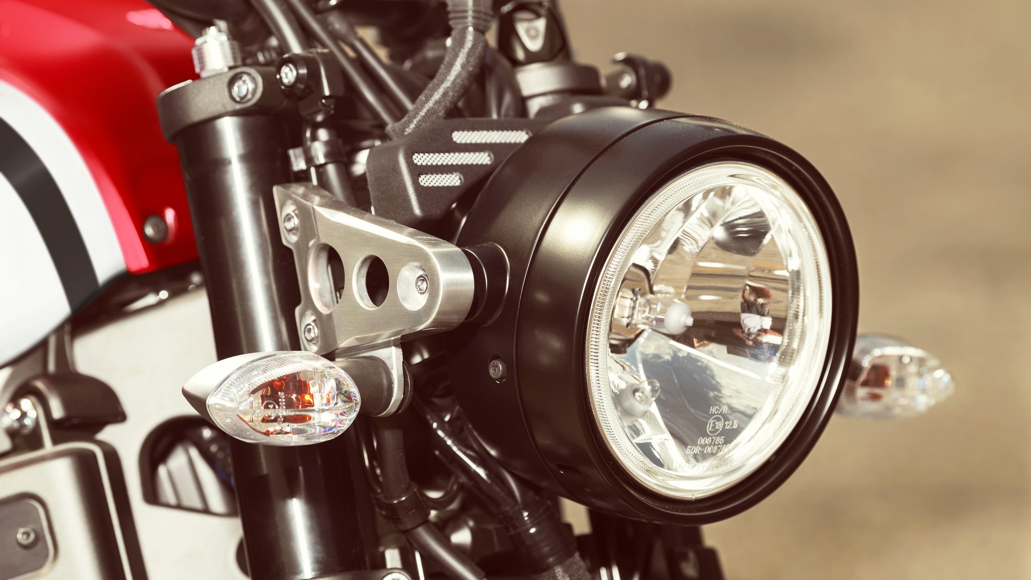 Up front, a large, round multi-reflector headlight provides both style and illumination in equal measure, complete with trick aluminum supports while out back, a round all-LED tail and brake light is mounted above the rear fender.