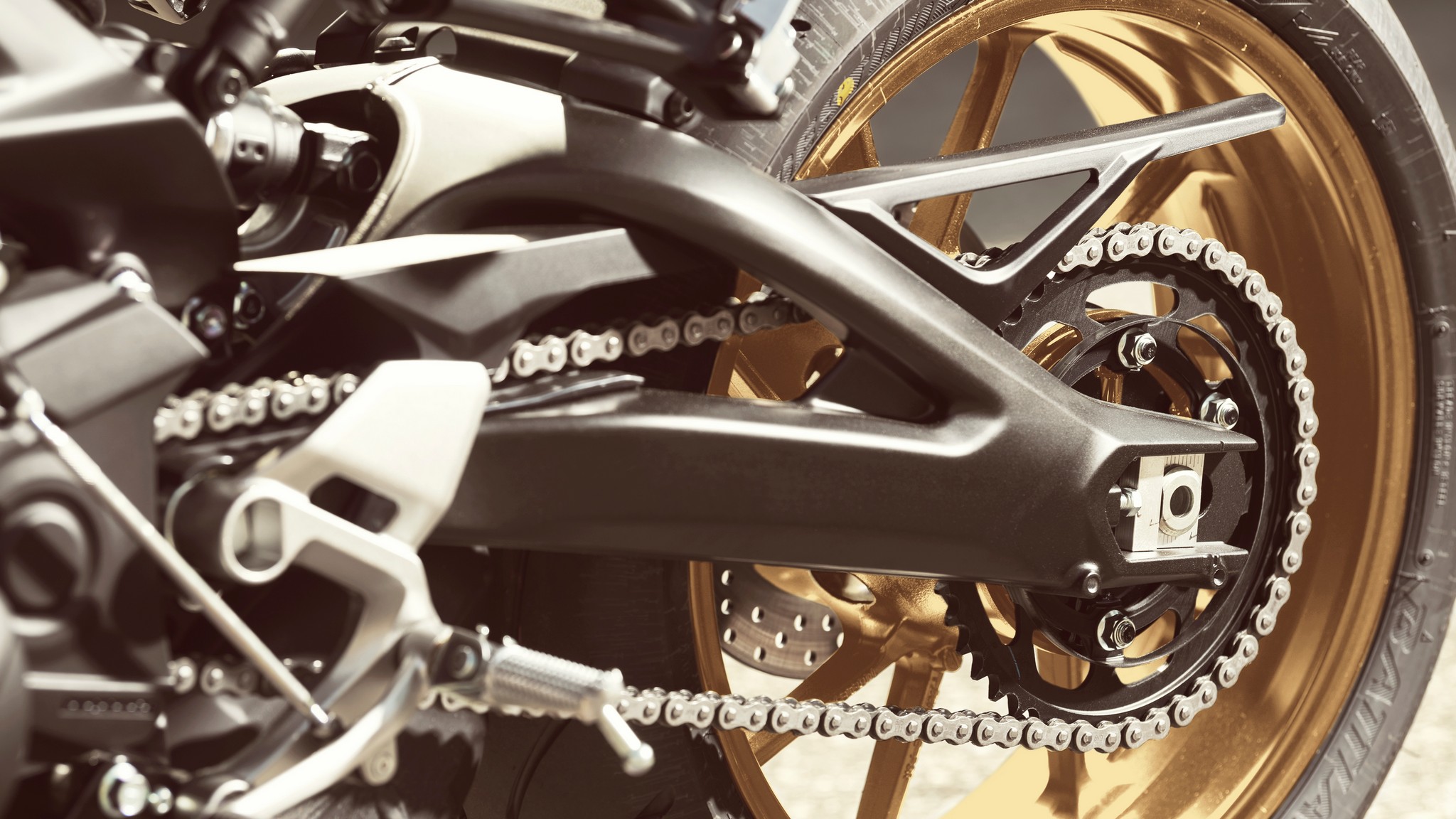 Lightweight 10-spoke cast aluminum wheels are fitted with a 120/70ZR17 front tire and 180/55ZR17 rear tire for excellent traction.
