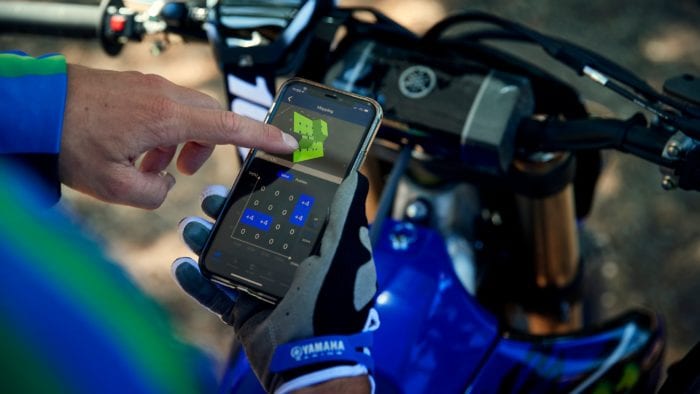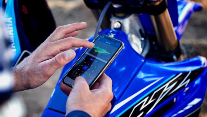 The free of charge and industry-exclusive Yamaha Power Tuner app brings the power of the GYTR Power Tuner to your iOS® or Android® device. Using wireless connectivity to talk to the bike’s onboard CAN-bus network, the app allows owners to adjust air/fuel mixture and ignition timing maps to tune engine performance for track conditions, record race log information and monitor a range of data such as maintenance and system diagnosis, engine run time and more.