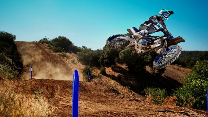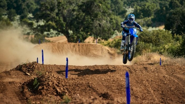The 2021 YZ450F is Yamaha’s most powerful motocross specific bike. Using a 450cc 4-stroke liquid-cooled engine with titanium valves, the bike produces a serious 53 HP and 33 lb-ft of torque. Like the other off-road models in the 2021 lineup, this amount of grunt makes it easily viable for national and international supercross competition.