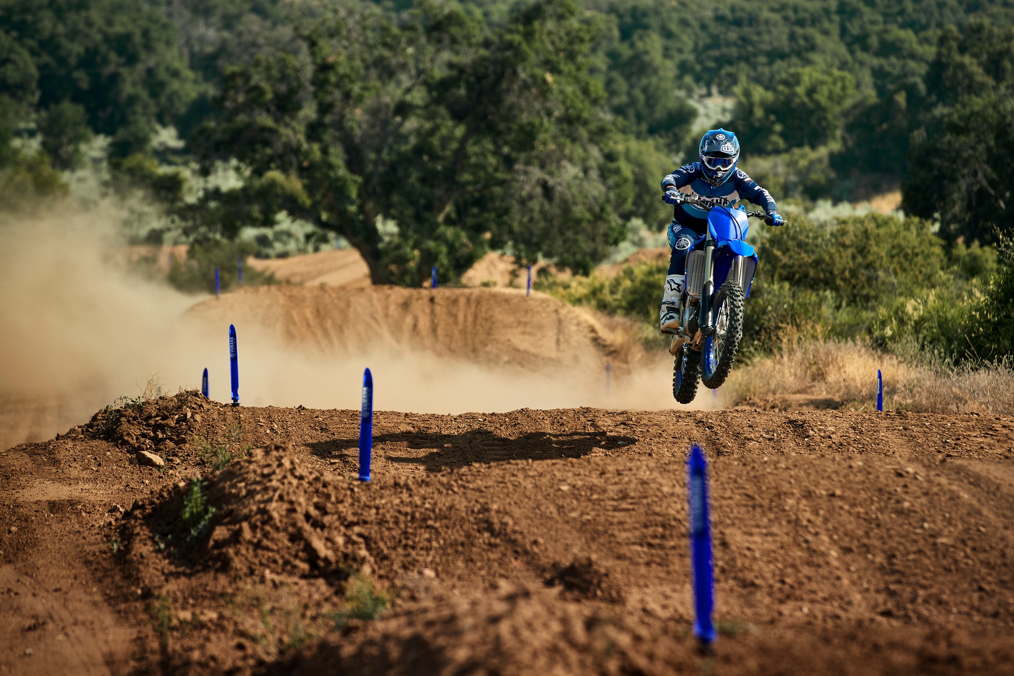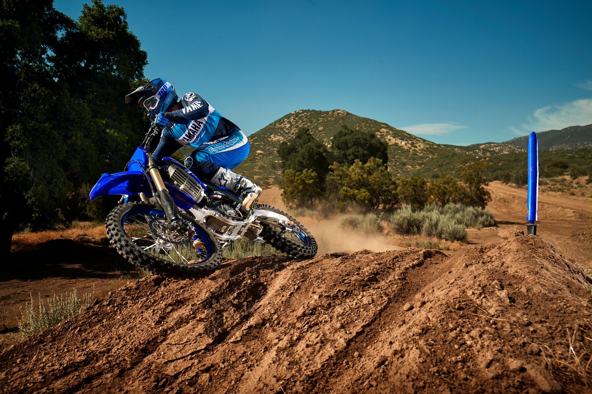 The 2021 YZ450F is Yamaha’s most powerful motocross specific bike. Using a 450cc 4-stroke liquid-cooled engine with titanium valves, the bike produces a serious 53 HP and 33 lb-ft of torque. Like the other off-road models in the 2021 lineup, this amount of grunt makes it easily viable for national and international supercross competition.