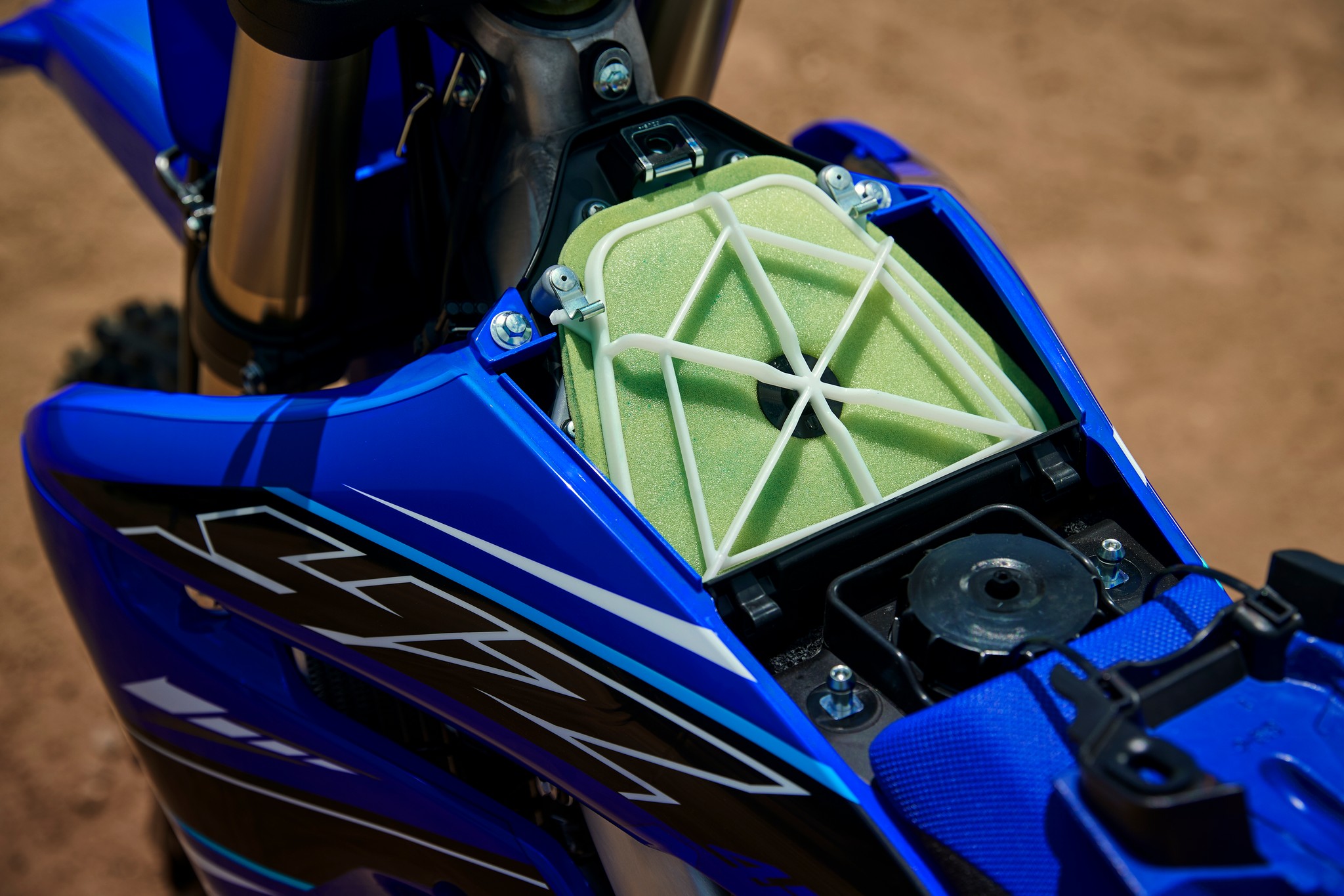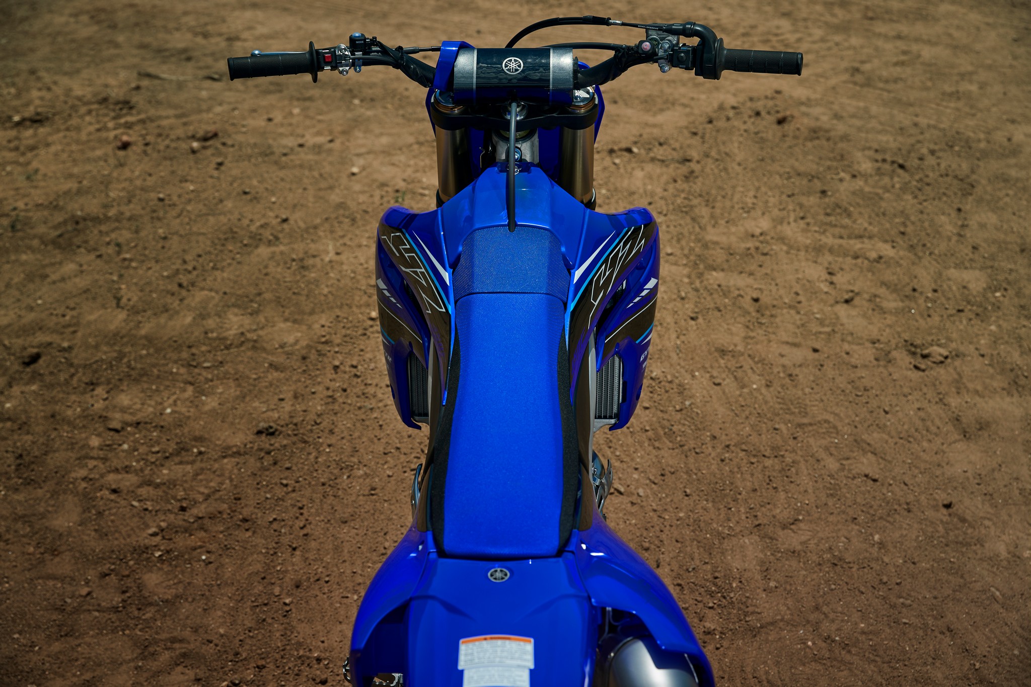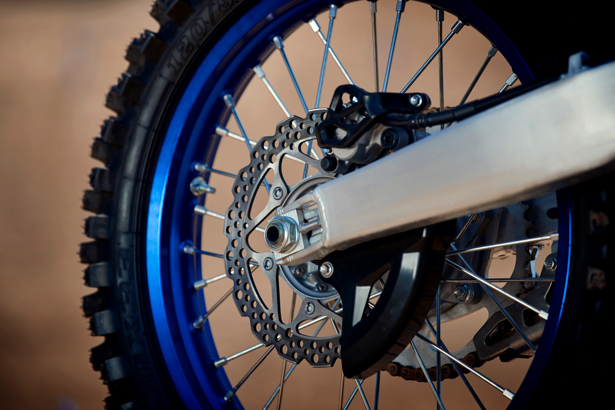 The supercross capabilities of the YZ450F shows through with a full suite of competition parts already fitted from the factory. KYB fully adjustable front and rear shocks, with 48mm inverted forks up front travelling 12.2 inches and the adjustable monoshock at the rear giving 12.5 inches of travel.