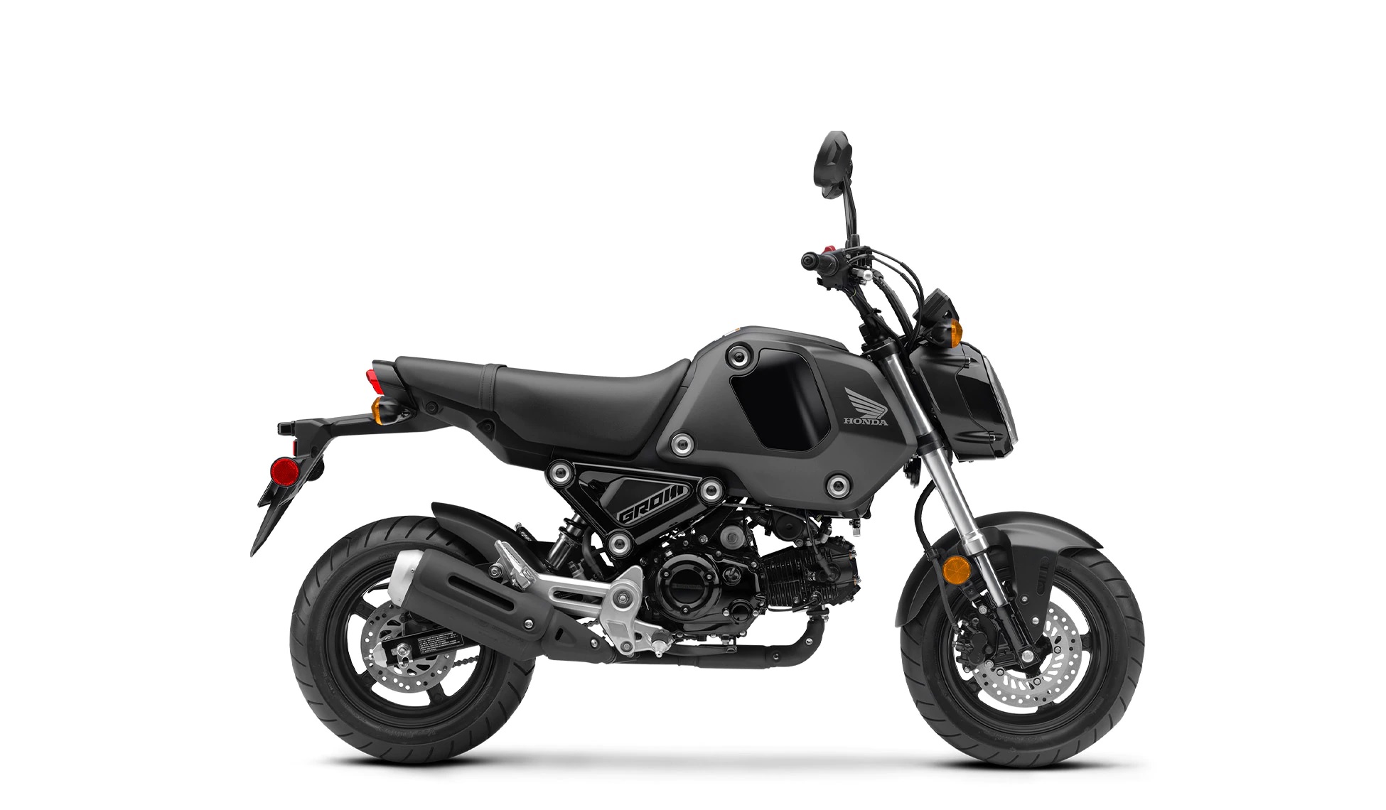 Part of the fun of owning and riding a Grom is the way it looks. So for 2022 we’ve given the Grom some tasty new bodywork. Plus, it’s easy to remove if you want to customize it even further. In addition, the engine, exhaust, wheels and swingarm are all blacked out for an edgy look.