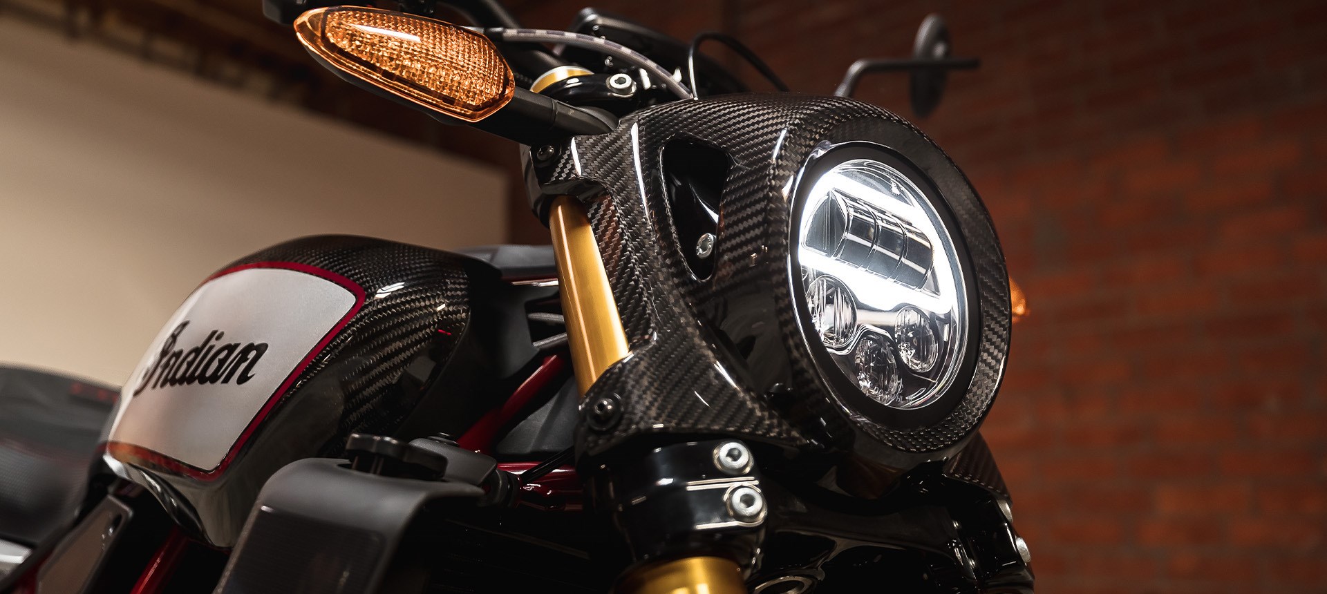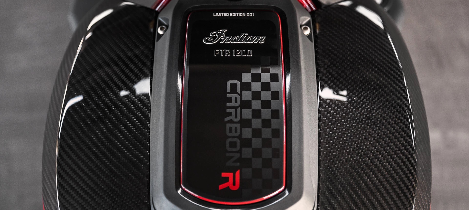 The Indian FTR R Carbon is available exclusively in Indian’s Carbon Fiber finish.