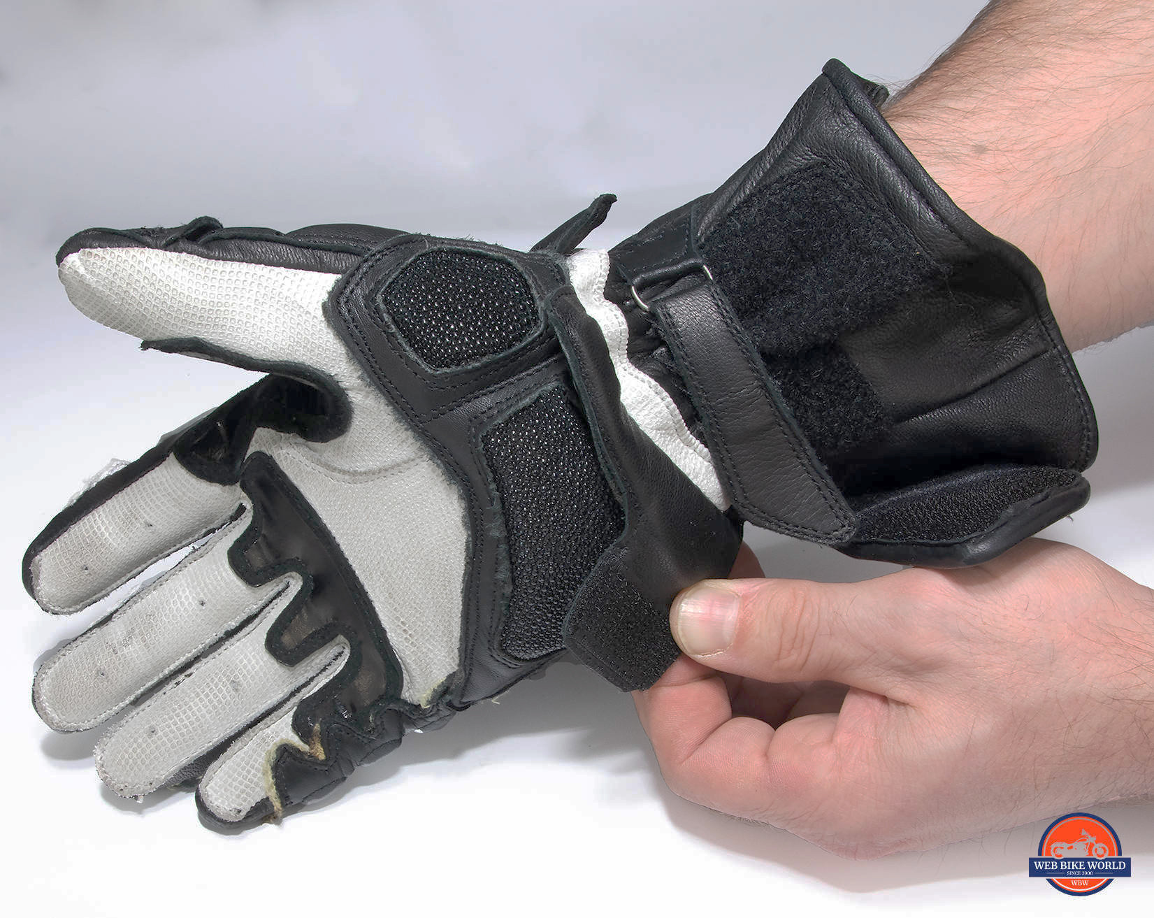 I would have preferred a longer strap that reaches fully across the gauntlet portion of the glove instead of this style which only goes about halfway, but it catches and holds on the velcro solidly and doesn’t give. I feel confident even in a crash there’s no way these gloves would back off one iota and expose my hands to slide injury.