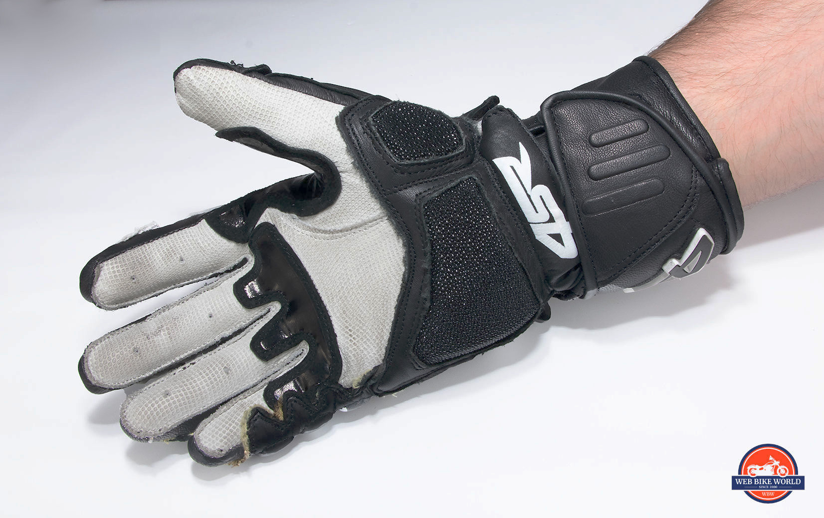 The ring and little fingers come connected together with a leather patch as is commonplace with racing gloves in order to help protect the pinky in a crash situation.