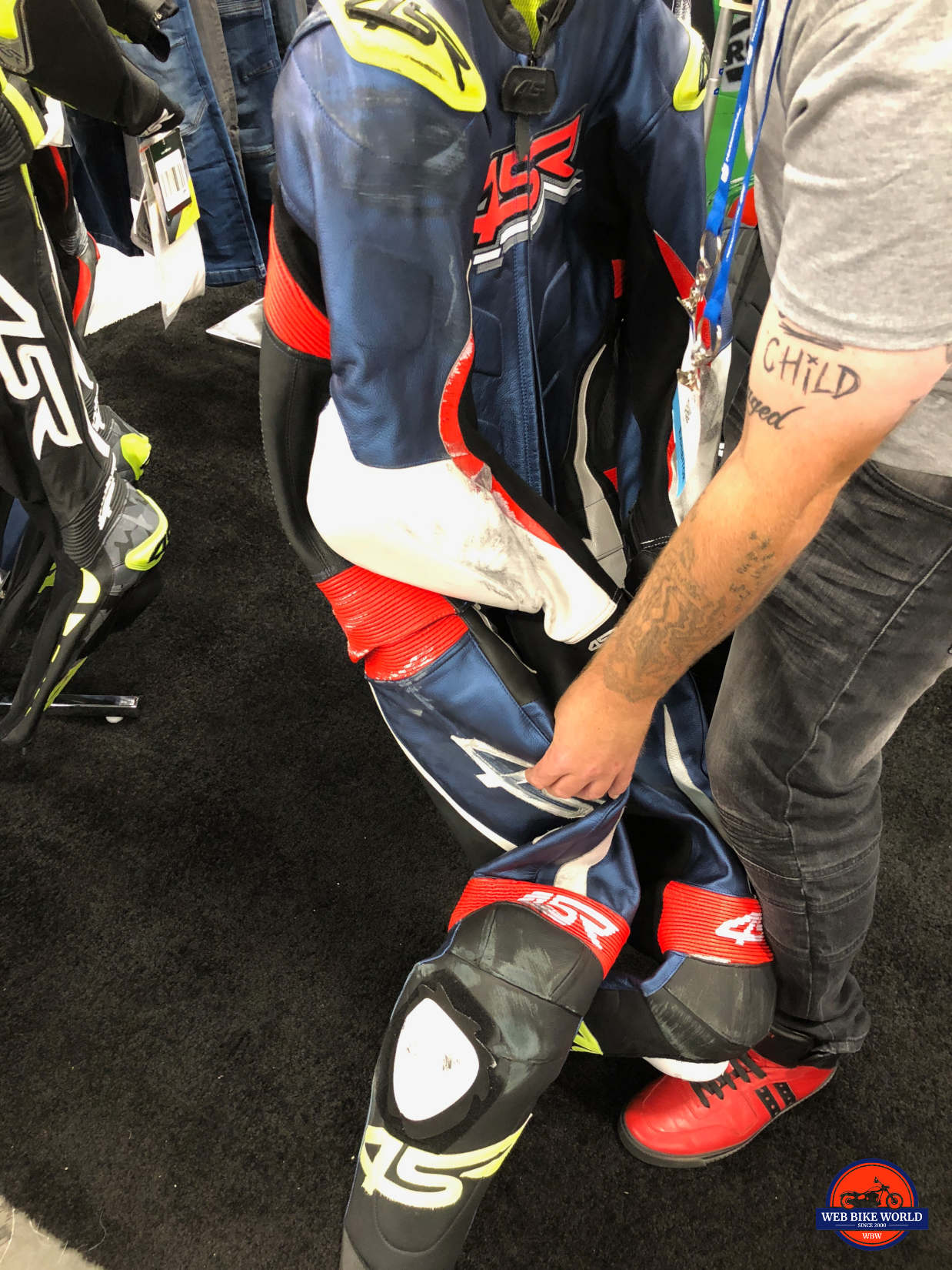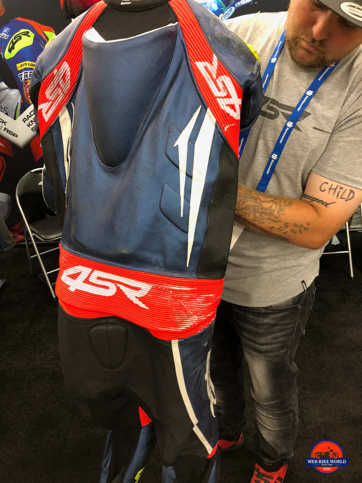Jerry Sr had recently sacrificed his body in the name of testing one of their race suits when he low-sided at 70 mph. As you can see in the photos the suit held up well in a slide and Jerry was unhurt. The leather used is thick yet supple, the seams are double or triple stitched and the armor is all CE Level 2 in everything 4SR makes.