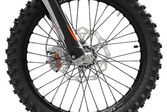 WP suspension is standard, of course. Brembo brakes and hydraulics are also par for the course. The biggest change the 450 SX-F sees is that its front brake is a whopping 260mm disc, compared to the 220 to 230 mm discs on lower spec models.