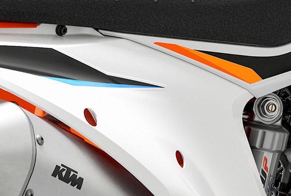 There is also a 450 SX-F Factory Edition, which adds an Akrapovič titanium exhaust, a racing connectivity unit to review laps, KTM factory competition wheels, a carbon-composite skid plate, a semi-floating front brake disc, and a full Red Bull Racing graphics kit. It also features the same Hinson clutch that the KTM Dakar Racing Team use on their 450 Enduro bikes, meaning endurance and race proven clutch feel.