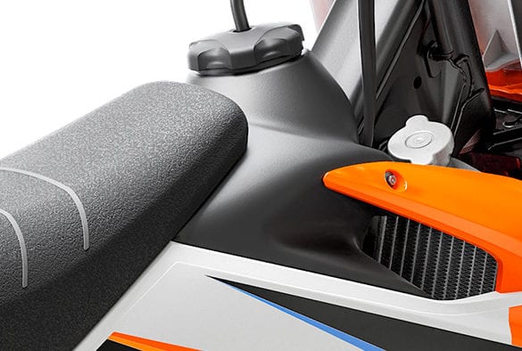 KTM seems to have the formula to success, as the 450 SX-F only weighs 2.5 pounds more than the 350 SX-F, which in and of itself was a super light bike. Electronic fuel injection, a single overhead camshaft, and some very tricky valve management allow the engine to be the lightest in its class, while also being one of the most powerful in the 2021 lineup.