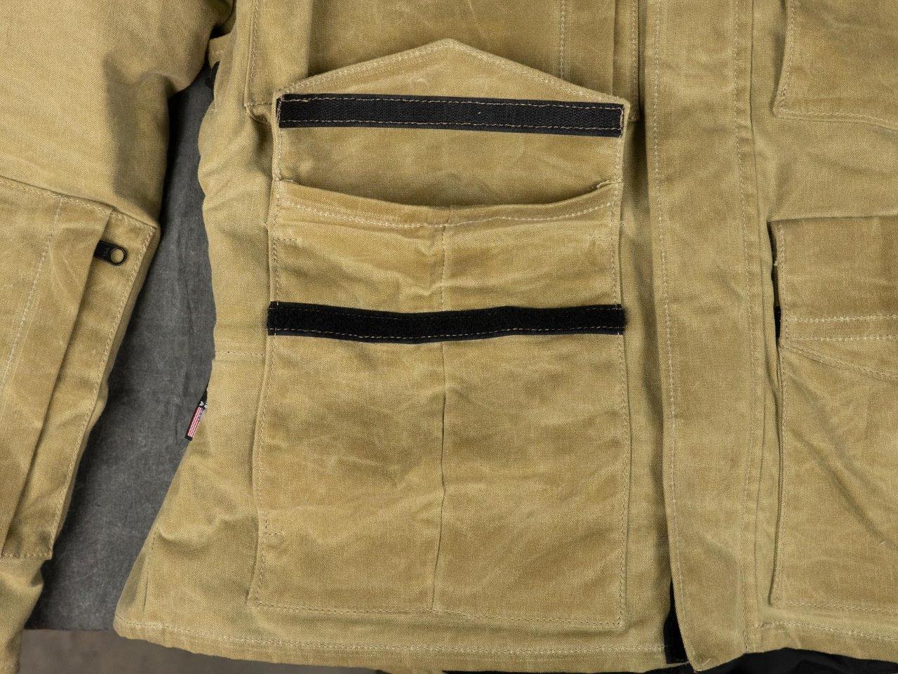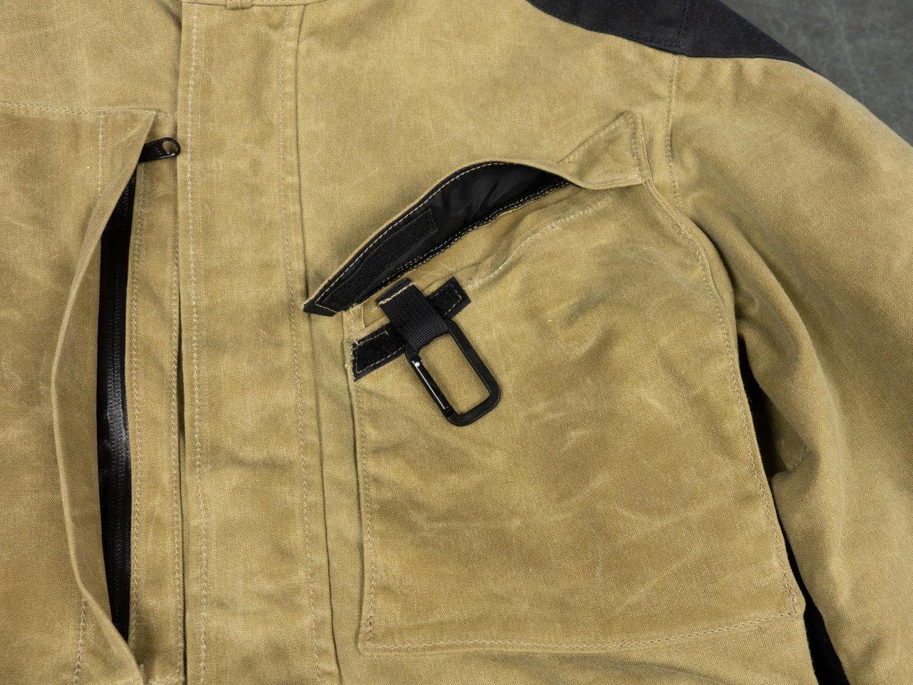 Being based on the Roadcrafter, there are plenty of storage options on the Cousin Jeremy jacket. There are two pockets at the waist with fold over flaps for water resistance and these close with hook and loop material. Each of these pockets has a side opening for handwarmer pockets within a separate space behind the main pocket shell.