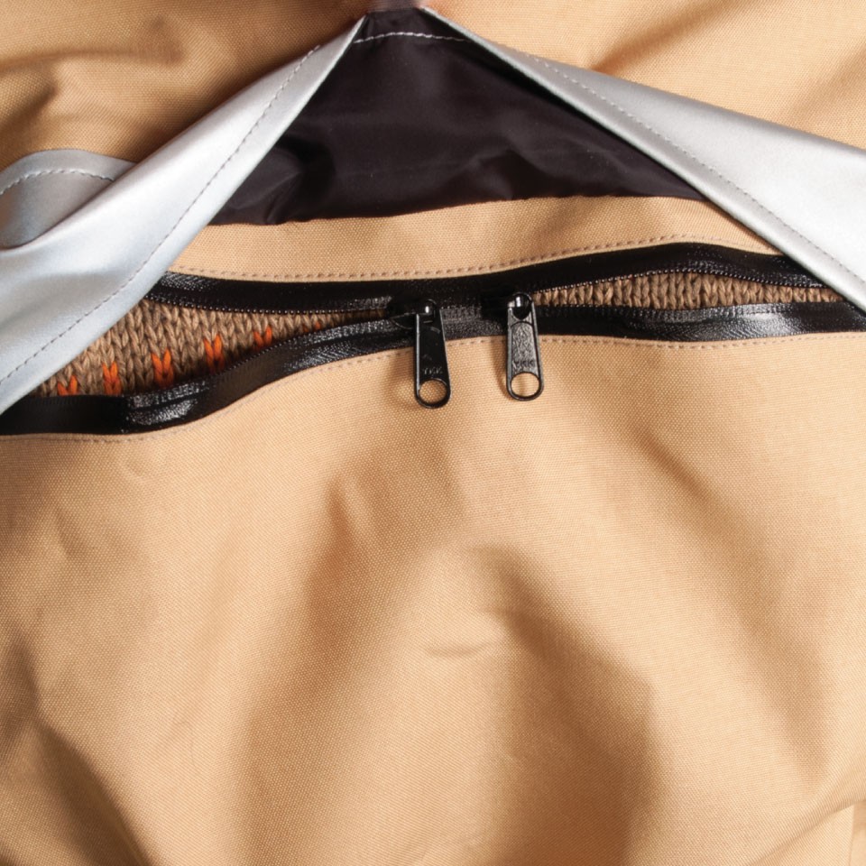 Even more, there are a few weather specific features that can be added such as a chest insulation pad for cold weather and boot covers that can be stowed in pockets at the cuff of each leg for relief from wet weather.