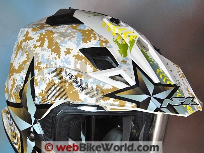 The FX-39 DS comes with a pair of black side covers, which allow the helmet to be worn with the peak removed.