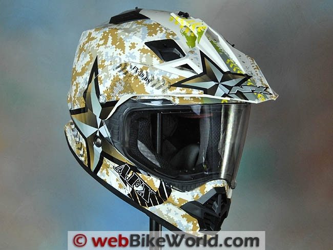 It give the helmet a real off-road adventure look and, just by coincidence, it’s also perfectly suited for the new webBikeWorld Budget Adventure Touring series.