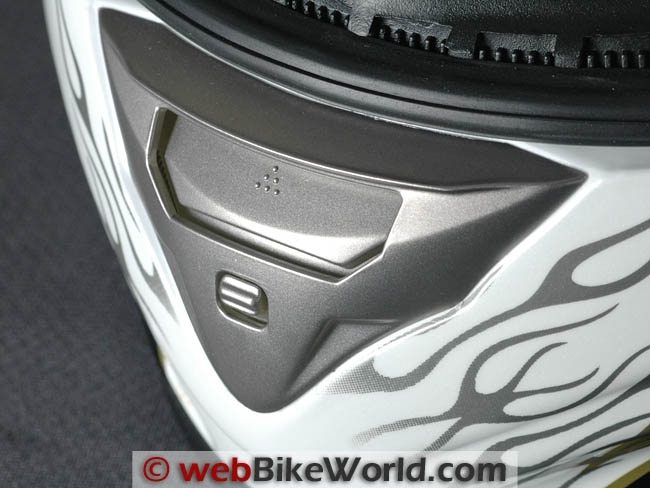 The FX-90 has a basic on/off chin vent, but it has vent ports that flow air directly through the chin bar; a rare feature on a helmet at this price — and unfortunately too often not even available on helmets costing much more!