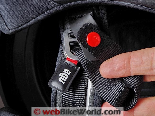 The AGV Horizon has a double D-ring attachment system for the chin strap. The padding is adequate and the length is good. The chin strap has a separate tab with a snap to retain the extra length and it’s easy to find when wearing gloves.