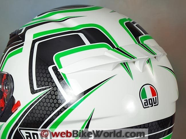 The air passes through large channels in the EPS and the liner is correctly molded and cut to allow the air to flow on to the top of the head. Two large exhaust vents in the rear pull the air out the back of the helmet, under the spoiler that does look a bit like an add-on.