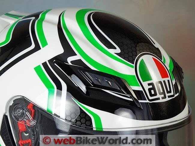 The AGV marketing material makes reference to an adjustable face shield opening, but I’m not sure what that means. The face shield opens to the first strong detent too wide for gentle defogging, then it has 2-3 soft detents, then one final stronger detent to the final open position.