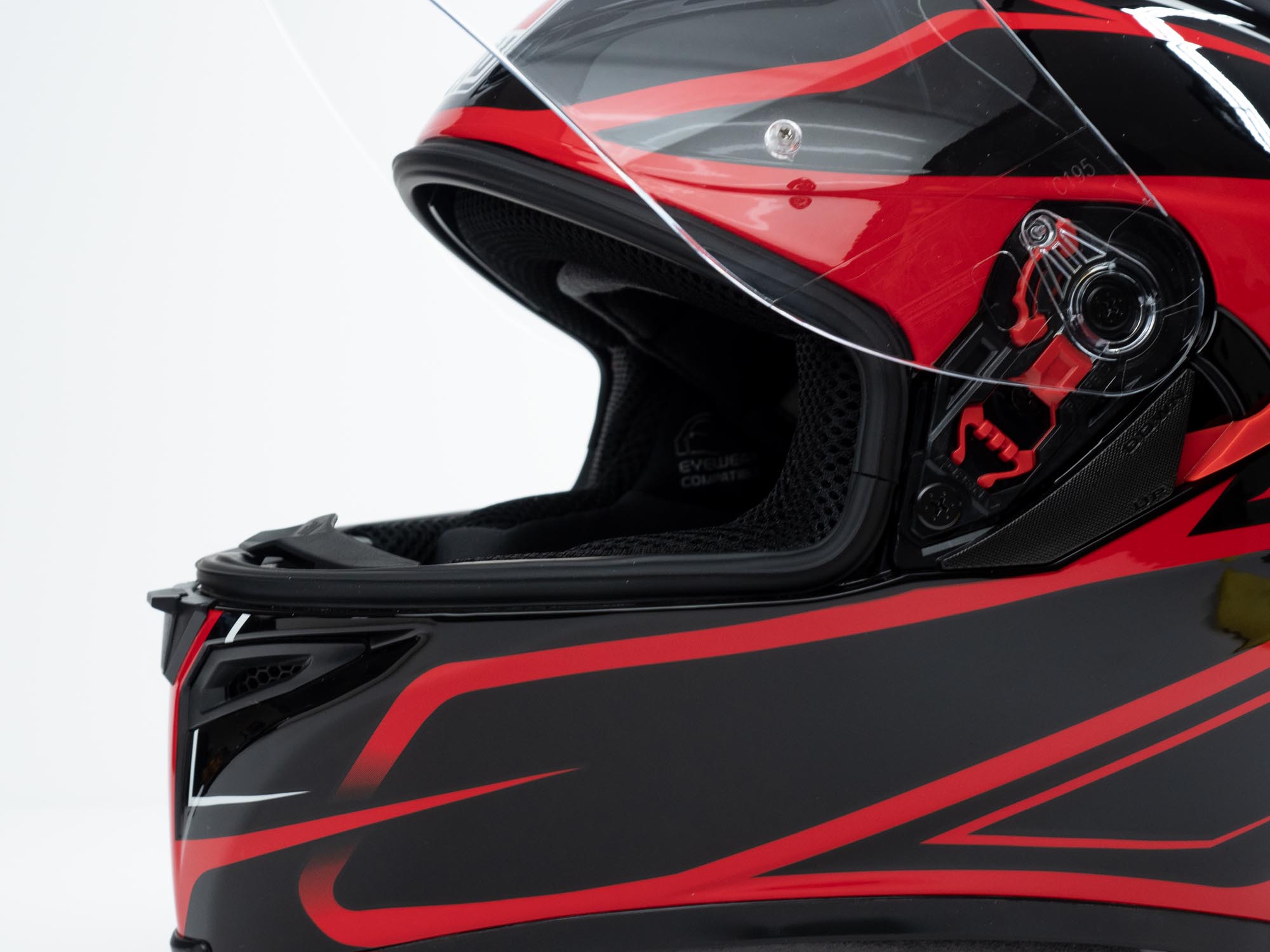 Some of the air is passed up to the visor for demisting but it’s hard to feel much air going in that direction with the visor completely closed. To make it more effective, the K5 S has a sliding switch that will lift the visor open about 3 to 4mm. This helps to let some additional air in and helps draw some air up through the chinbar passage.