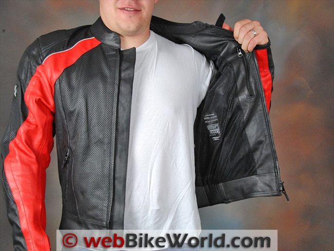 The typical taffeta-type mesh polyester inner attached lining keeps the leather off the rider’s skin while allowing all of that air to flow right in.