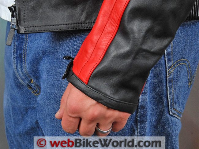 Adjusters would have been nice (albeit detracting from the jacket’s sleek look) because the sleeve diameter feels at about one size too wide for my arms, which are usually proportional for a men’s size large motorcycle jacket.