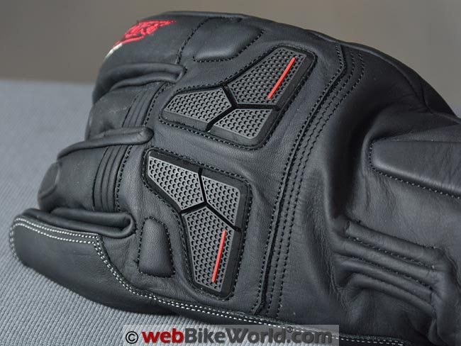 The angular shapes in the decoration-only finger “protectors” and the rubbery main knuckle protectors make the difference in styling. It’s a matter of taste, of course, but we prefer the look of the Spirit gloves.