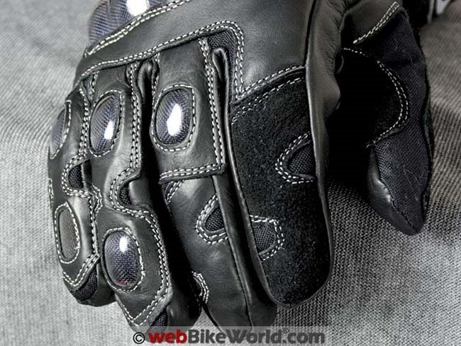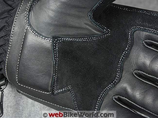 By the way, even a small leather section that continues up under the knuckle protector from the outer wrist section of the gloves is double-stitched, another nice touch.