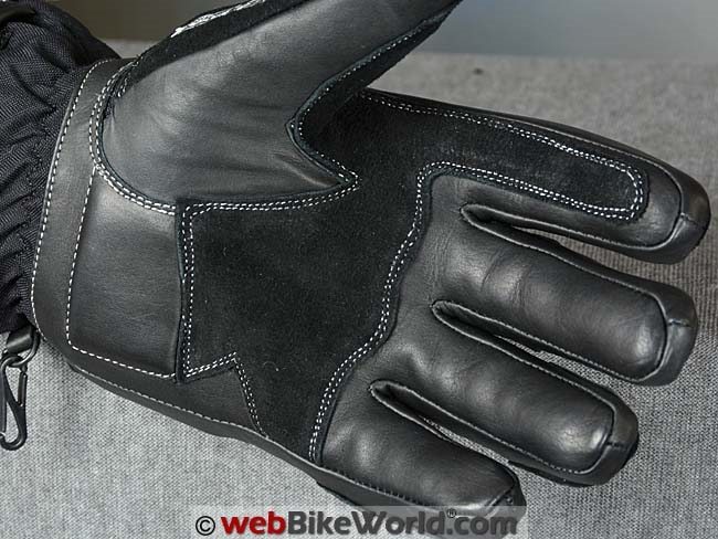 Again, these are winter gloves, so the Thinsulate and Hipora breathable barrier, combined with the leather and extra leather panels on the exterior of the gloves makes these feel kind of thick, typical for non-heated cool/cold weather motorcycle gloves.