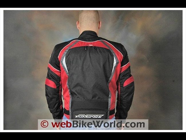 The lower back of the jacket also has a built-in section of padding, seen below with the embroidered AGV Sport logo on top.