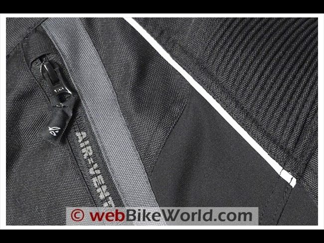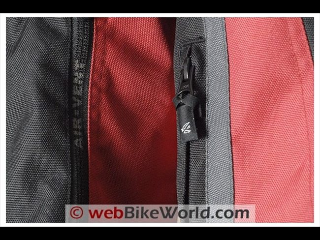 AGV Sport says that YKK zippers are used throughout on the Tempest jacket. I’m not sure if the zippers are made from a different type of material, but they seem to slide easier than average. The long fabric pull on each zipper helps also.