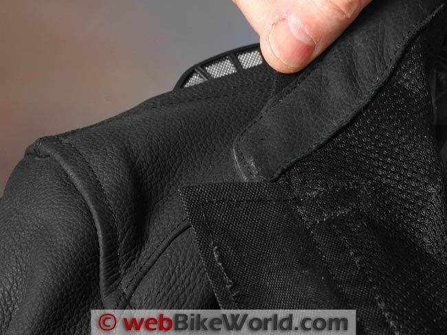 An air scoop is located at the top of each shoulder, and lo and behold, they actually work! I can feel the air flowing in, even at not-too-fast speeds. This helps to keep the back of the suit cool, although the effect is somewhat mitigated when wearing a back protector.