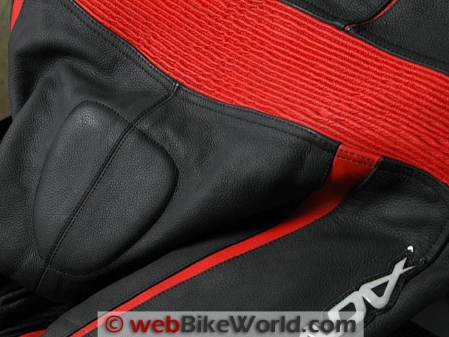 The back of the legs, the arms and the crotch feature sections of an elastic Kevlar textile material which also adds noticeable stretch and comfort. This helps the suit fit better over “irregularly” shaped bodies of mere mortals, while keeping the fit correct for maximum protection.