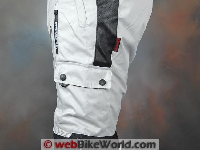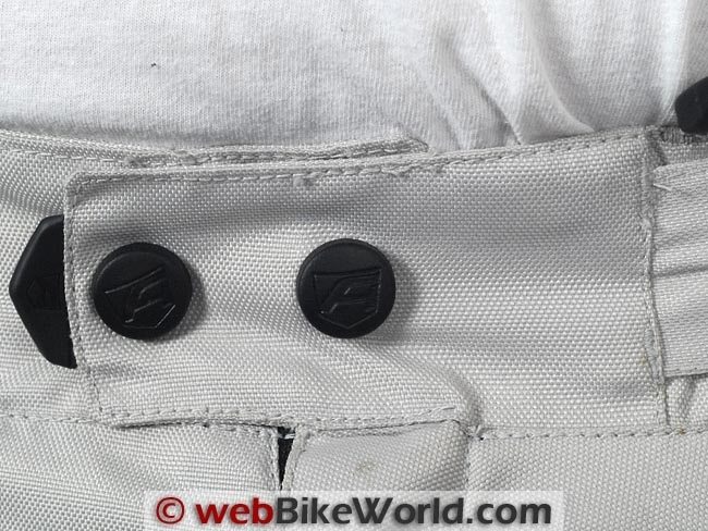 The pants have a vertical vent on either side, just inboard of the pockets. These vents are covered with water-resistant zippers, one of which reads “Airvent” and the other is unlabeled. The vents don’t really add much ventilation, as they are pointed upwards when the rider is seated and there’s not much air flow over that area anyway when riding a motorcycle.