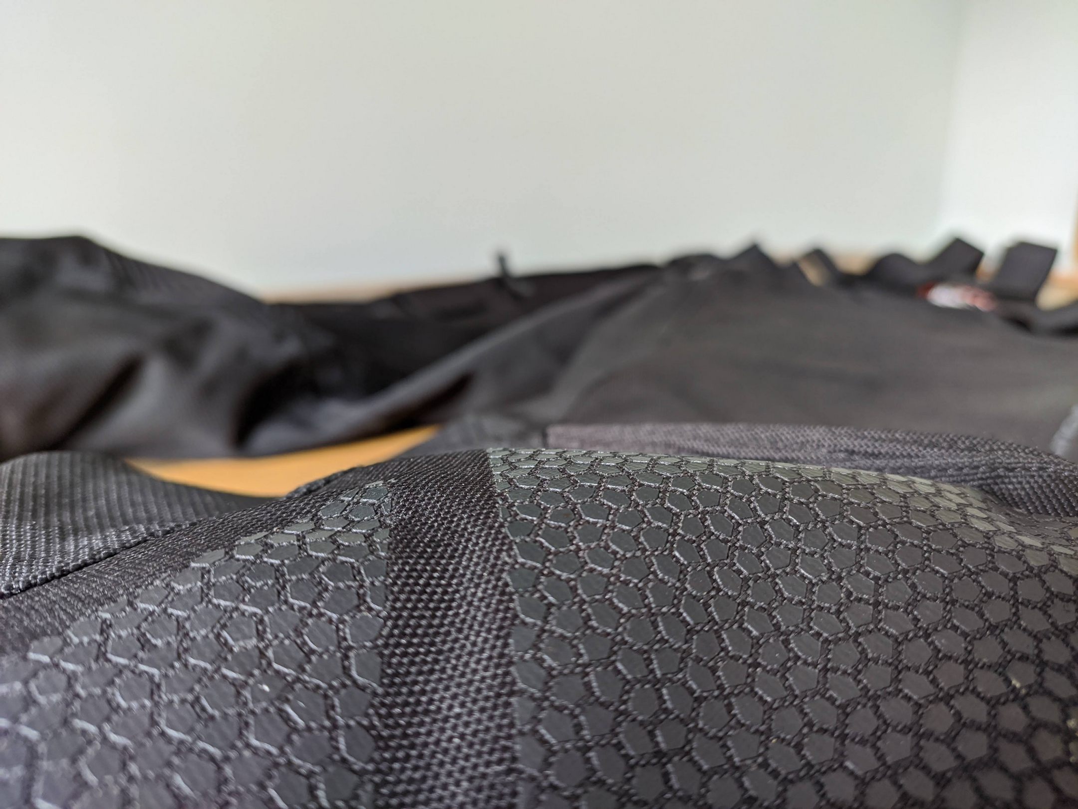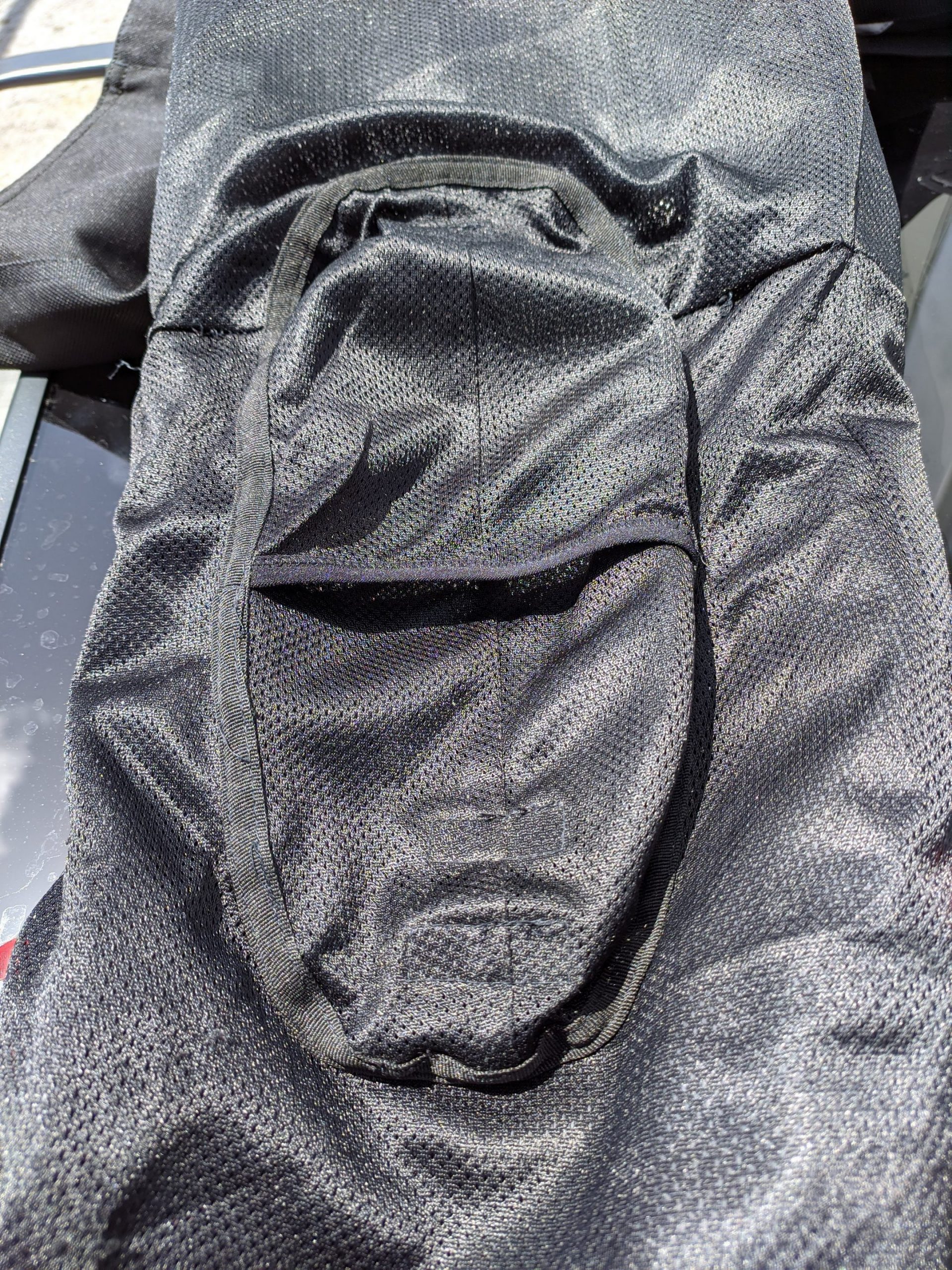 I haven’t tested this armour because it would almost certainly be pulled and dragged around by my jeans when lifting the trousers on and off at either end of my commute. Simple pockets, like on the original Andes, worked fine and I was able to fit my own armour into those.