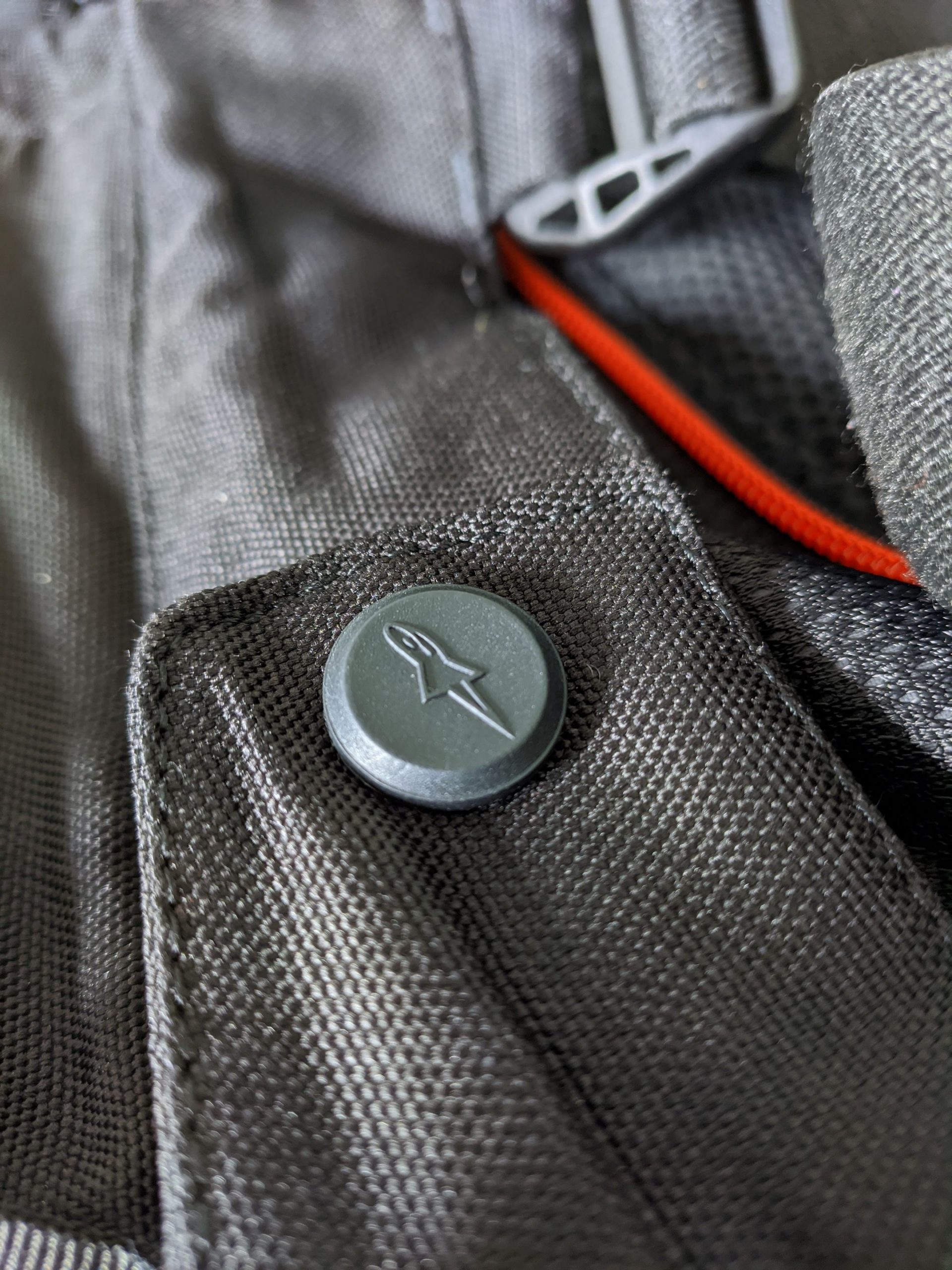 The trousers close in the middle using a good quality zipper, a hook fastener, and a button (which has the Alpinestars logo pressed on it, cool). The inclusion of a hook fastener is always a good thing because these things never fail, whereas buttons alone can never hope to keep the trousers closed, especially if you’ve put on a few pandemic-pounds during the recent lockdown.