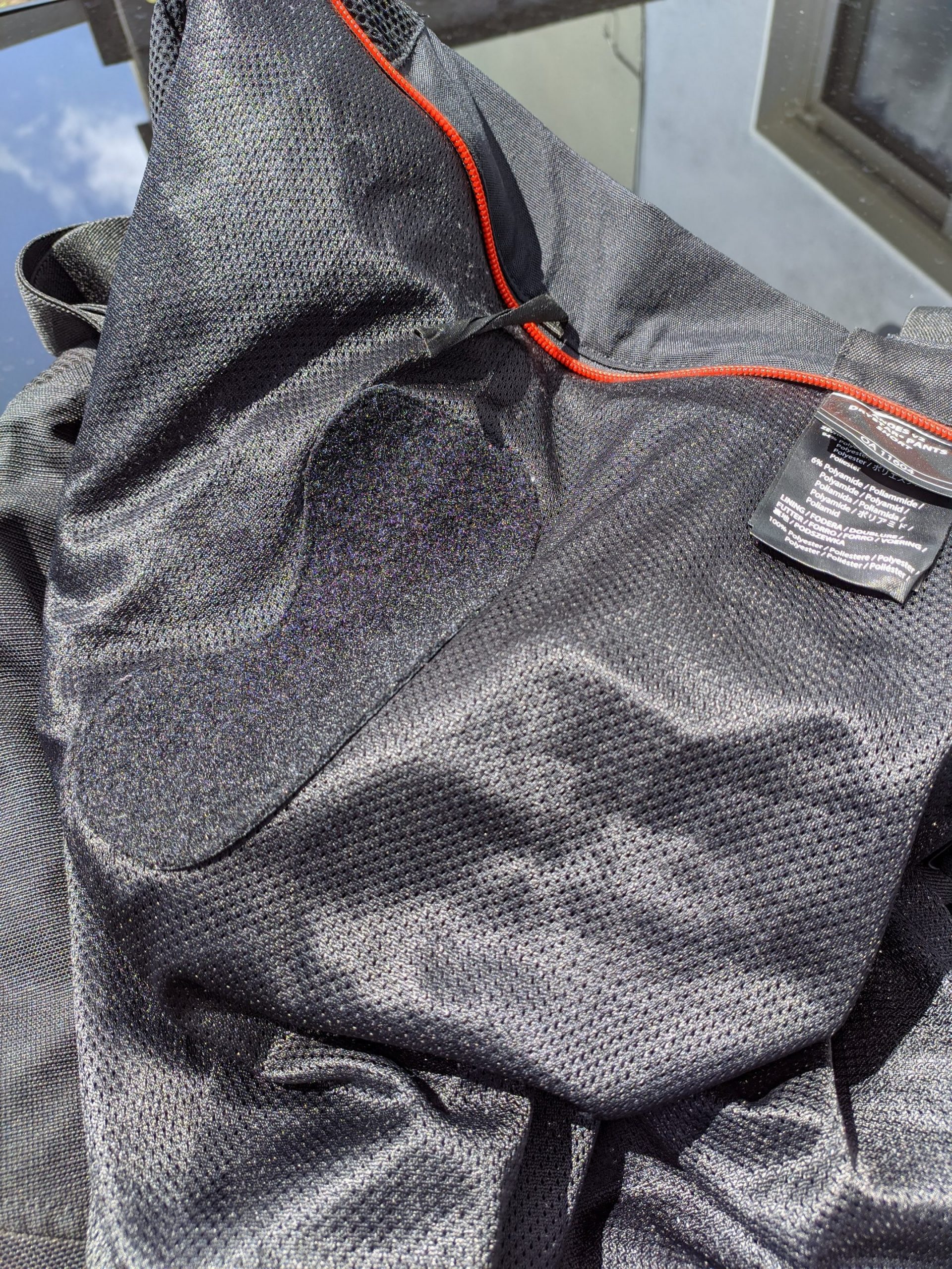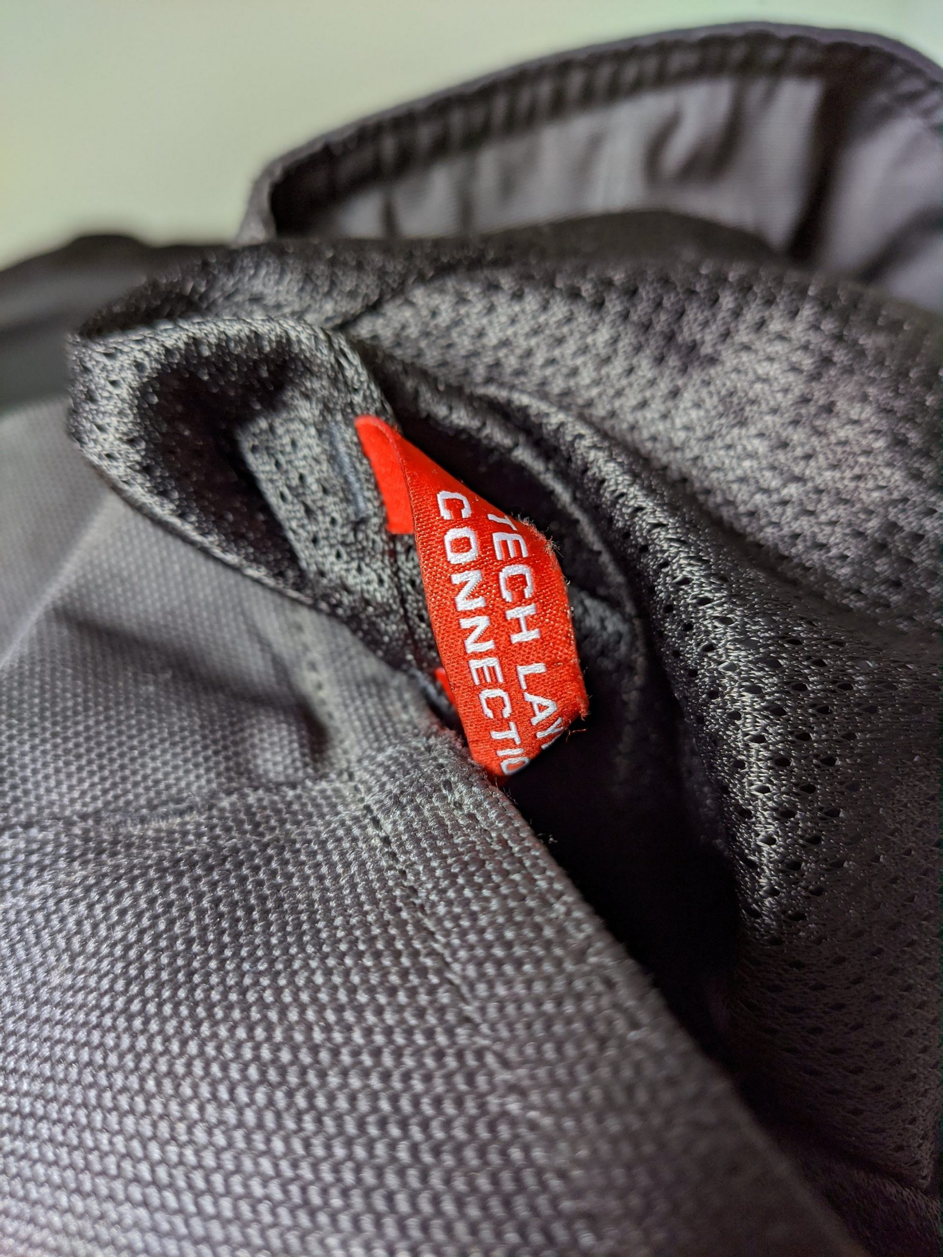 On the inside, you’ll find a nicely stitched thermal liner and a subtle red CE tag to show this has passed CE level A as official motorcycle PPE. The attachment tabs for the thermal liner are marked as “Tech Liner Connection”, which is probably overkill, but having them in red is a genius move to aid you in finding them. The thermal liner does its job well, keeping me warm in most conditions and doesn’t have any exposed stitching which can irritate on a long ride.