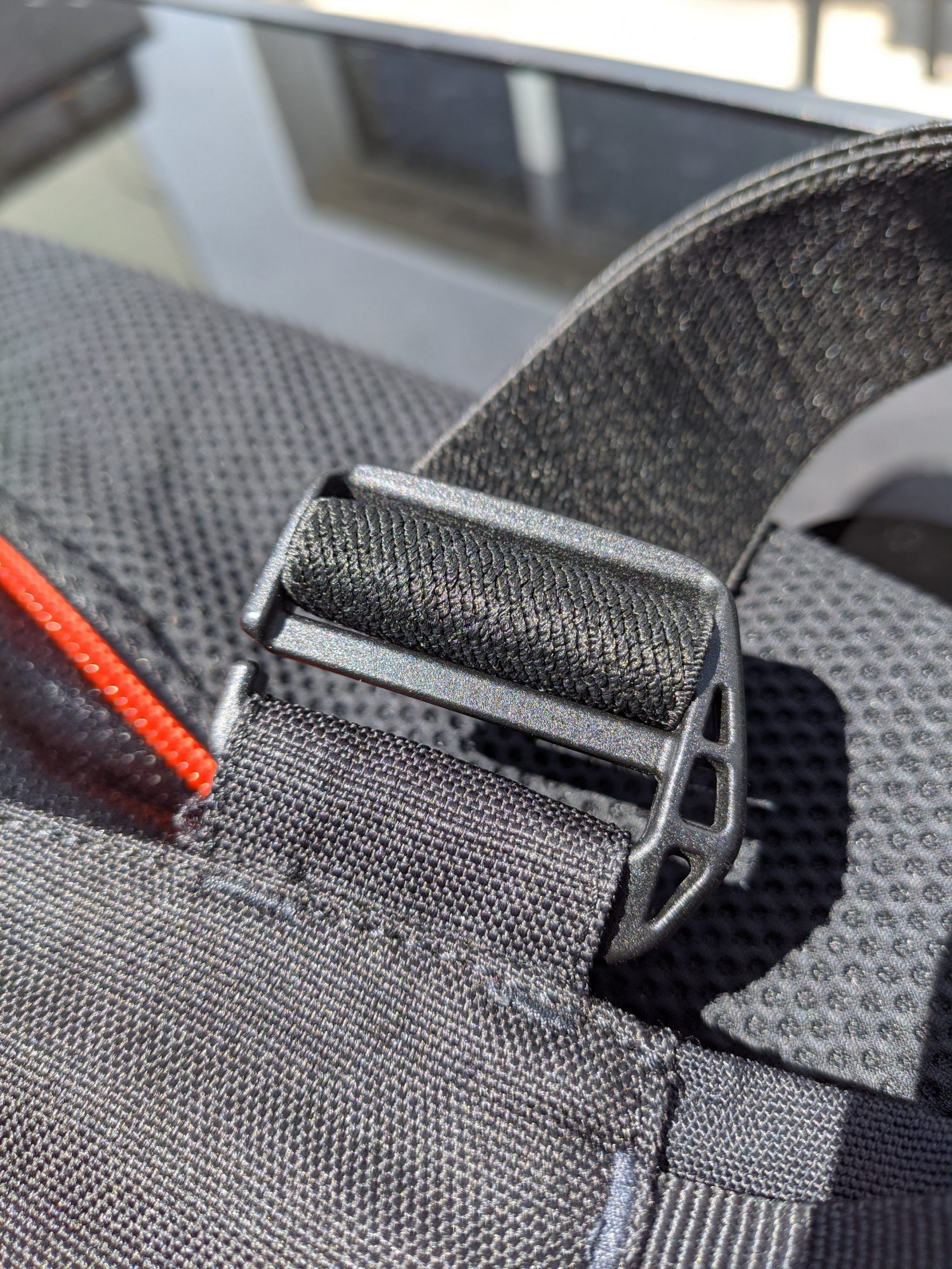 Speaking of pulling things in, there are two straps at the sides which you can pull to tighten the waist. These use a slide adjuster, like a backpack strap, rather than velcro so it won’t snag your T-shirt or rub uncomfortably against you as poorly-placed velcro might. It’s a good design choice but don’t go playing tug of war with them – I managed to rip one from the trouser completely when using them as handles to pull the trousers up my leg (granted, the trouser was stuck beneath my foot). I had mine fixed at a tailor and, really, once you set these you tend to forget them, and besides why mess around with these when you’ve got braces!