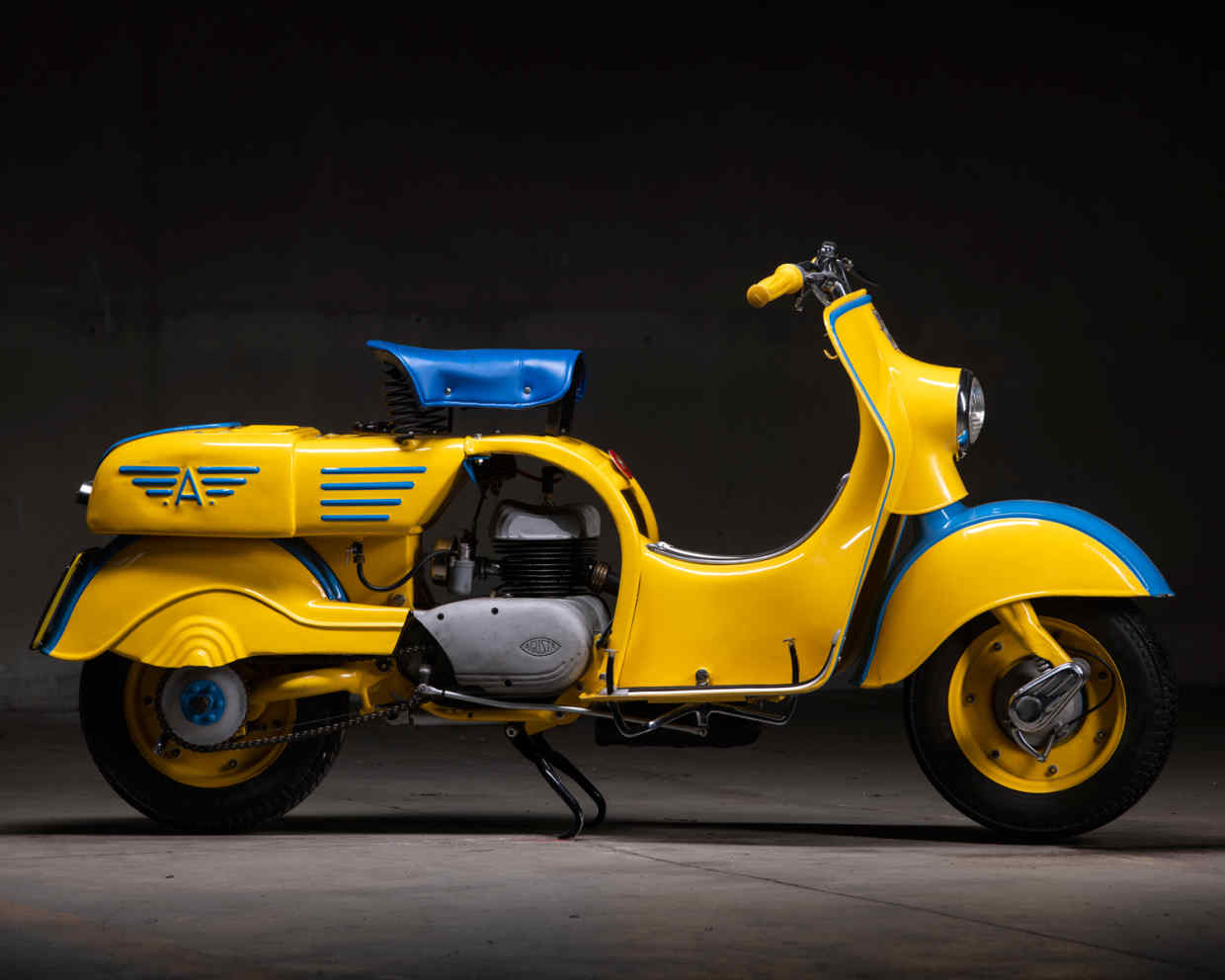 The collection of motorcycles was brought to auction by an Italian family who had almost 100 bikes to sell. Some of the bikes date all the way back to 1945. Everything from production road bikes to small scooters to high-powered competition race bikes will be for sale at the show.