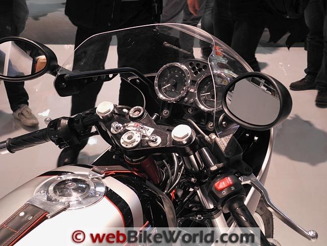 I did recognize the new Aprilia SRV scooter however. It was formally announced at the show. Remember the Aprilia Mana 850 GT I reviewed last year? Apparently, this is where its engine and transmission ended up. The SRV is listed as having an 850 cc, V-twin engine with 55.9 kW (76.0 HP?) at 7,750 RPM and maximum torque of 76.5 Nm at 6,000 RPM.