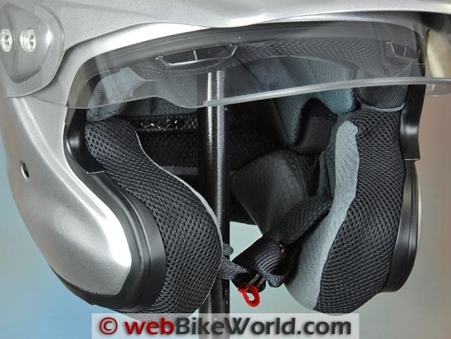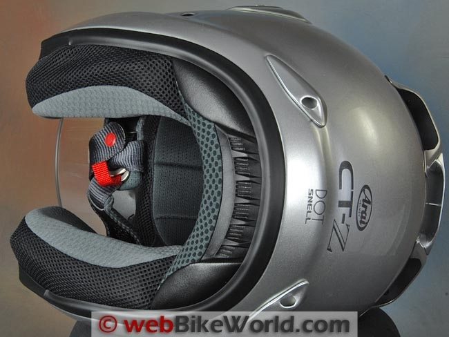 The CT-Z employs another recently introduced Arai feature: the 5 mm thick “peel away” pads in the cheeks and in the sides of the helmet liner. This allows for some customization of the fit — an excellent idea.