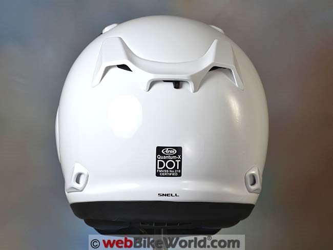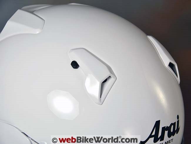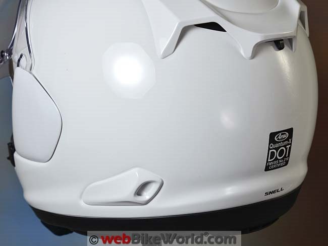 The Quantum-X has a fairly standard (for Arai) rear exhaust vent array with a single lever for opening and closing a sliding cover over the dual vent holes.