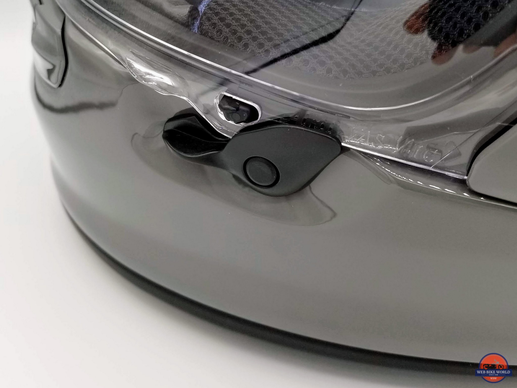 Regent-X has a VAS-V Max Vision shield. The VAS (Variable Axis System) has a 10mm wider eyeport opening than Arai’s old SAI shield system and provides good peripheral vision. The visor that came with the helmet has excellent optical clarity with no distortion and is Pinlock ready; however, the Pinlock insert is not included.