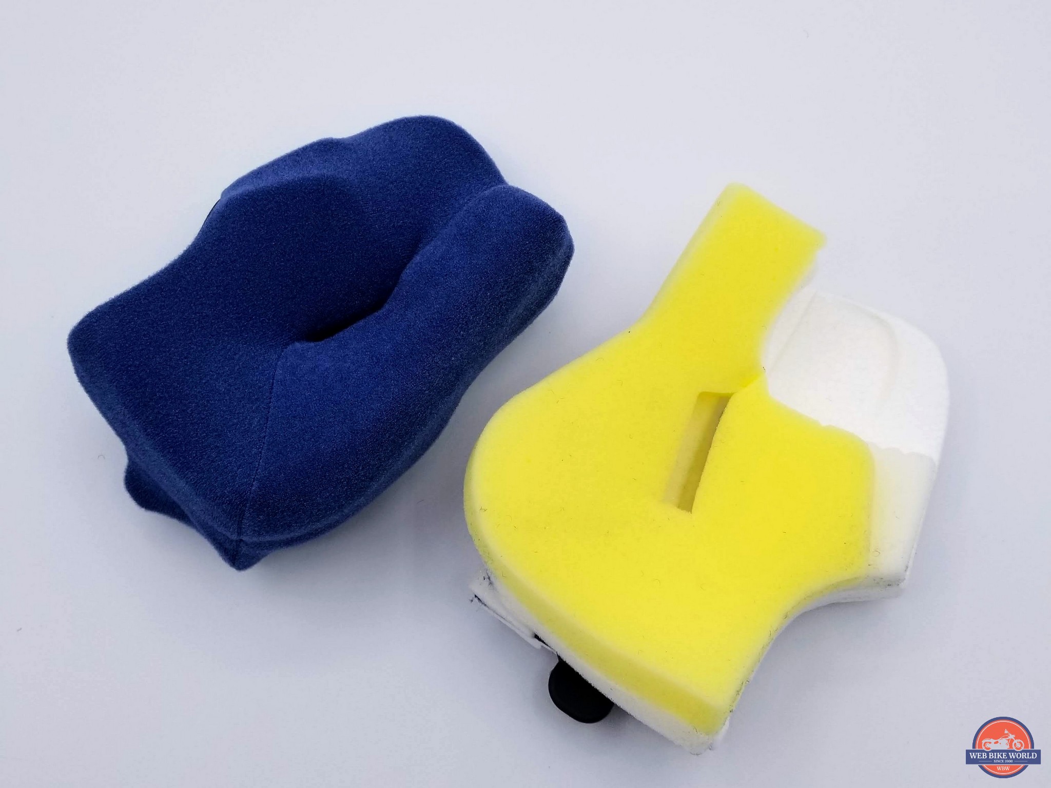 The new neck roll design is shorter to reduce weight. In addition, the front ends of the neck roll sit behind the cheek pads, and it doesn’t have those annoying tongue tabs to insert into cheek pads. This makes reinstalling the cheek pads effortless. Thank you, Arai.
