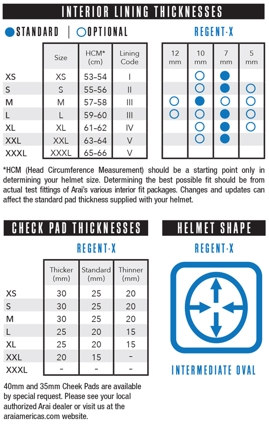 Regent-X is an Intermediate Oval, considered the most common of helmet shapes. Sizing is available in XS to XXL.