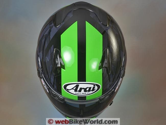 The face shield includes the loose brow ports mentioned above of the type found on other Arai helmets and the rear exhaust vent is similar to the RX-Q design, with a single slider that opens or closes the vents.