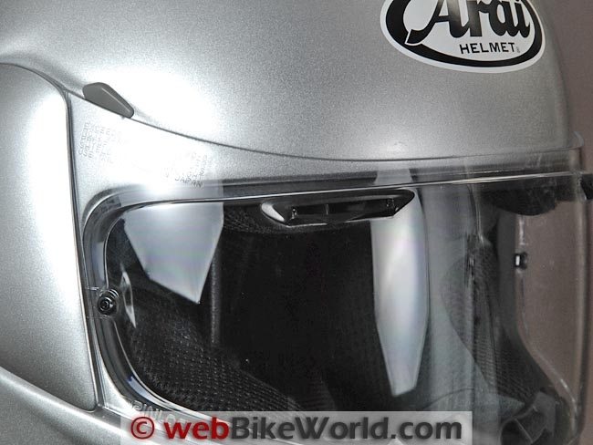 Editor’s Note: All full-face Arai helmets have the pull-down chin curtain, it has been described in other webBikeWorld Arai helmet reviews.