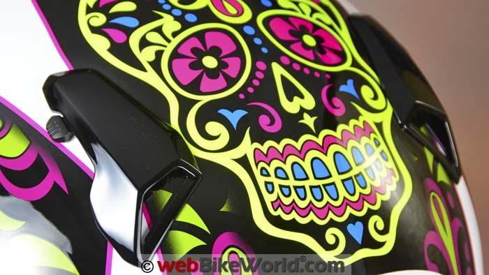 No matter, because we always leave the rear exhaust vent fully open for business, 24/7/365. There are two additional rear exhaust vents along the bottom of the helmet at 4 and 8 o’clock low.