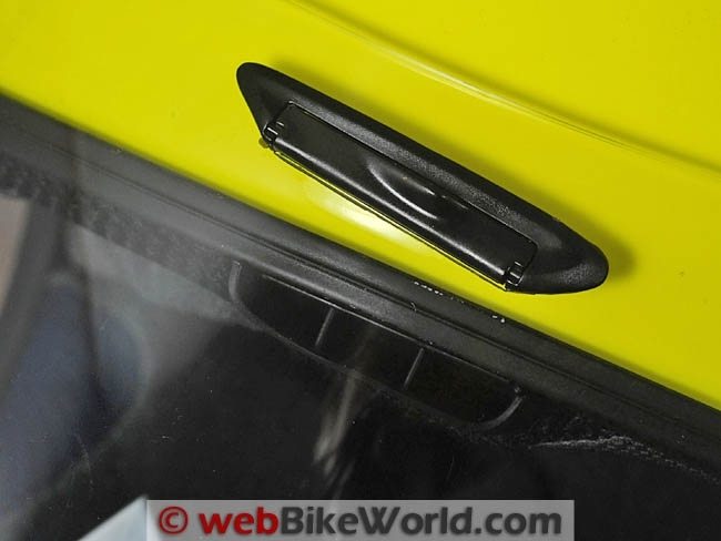 These funnel air through matching scoops build into the top of the eye port and direct the air through the fabric liner towards the rider’s head.