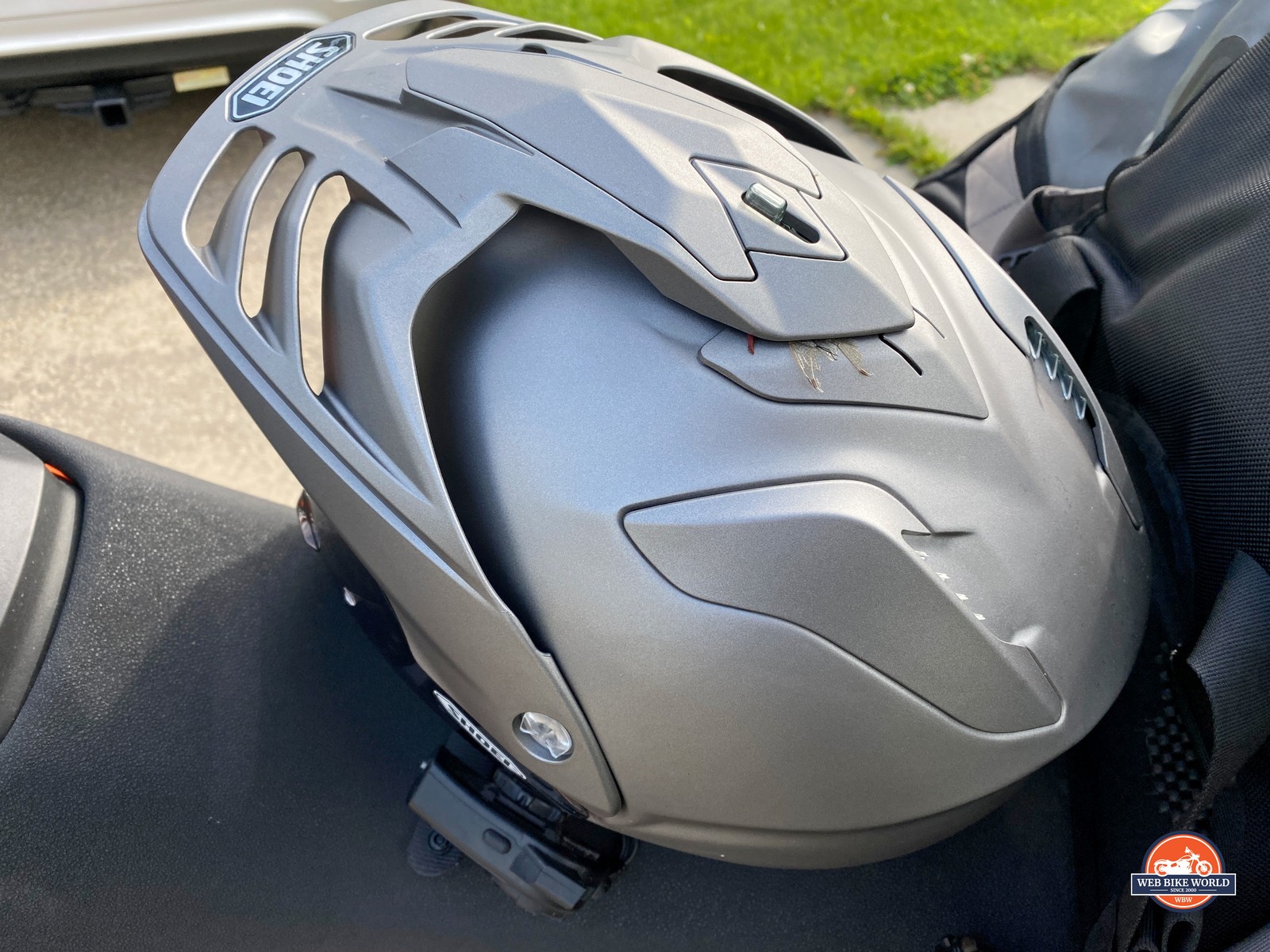 - The Shoei top vent filled up with bug guts regularly and had to be cleaned out in order to maintain good air flow, but at least the vent switches weren’t affected by any dust, dirt or insect carcass accumulation.