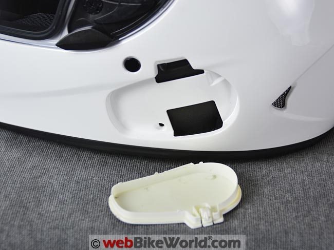 And finally, the dual intake vents in the chin bar are placed on either side of center, at the outer edges of the ABS in back of the chin bar.